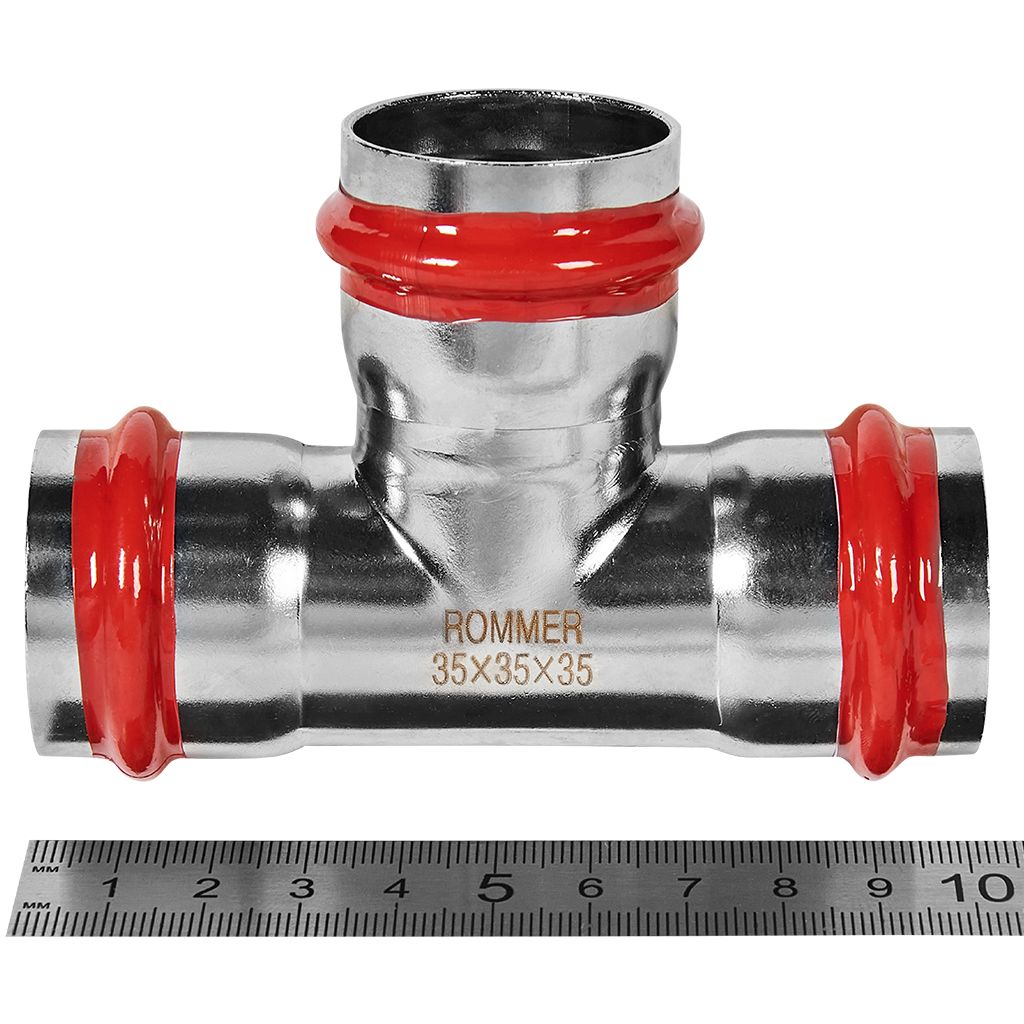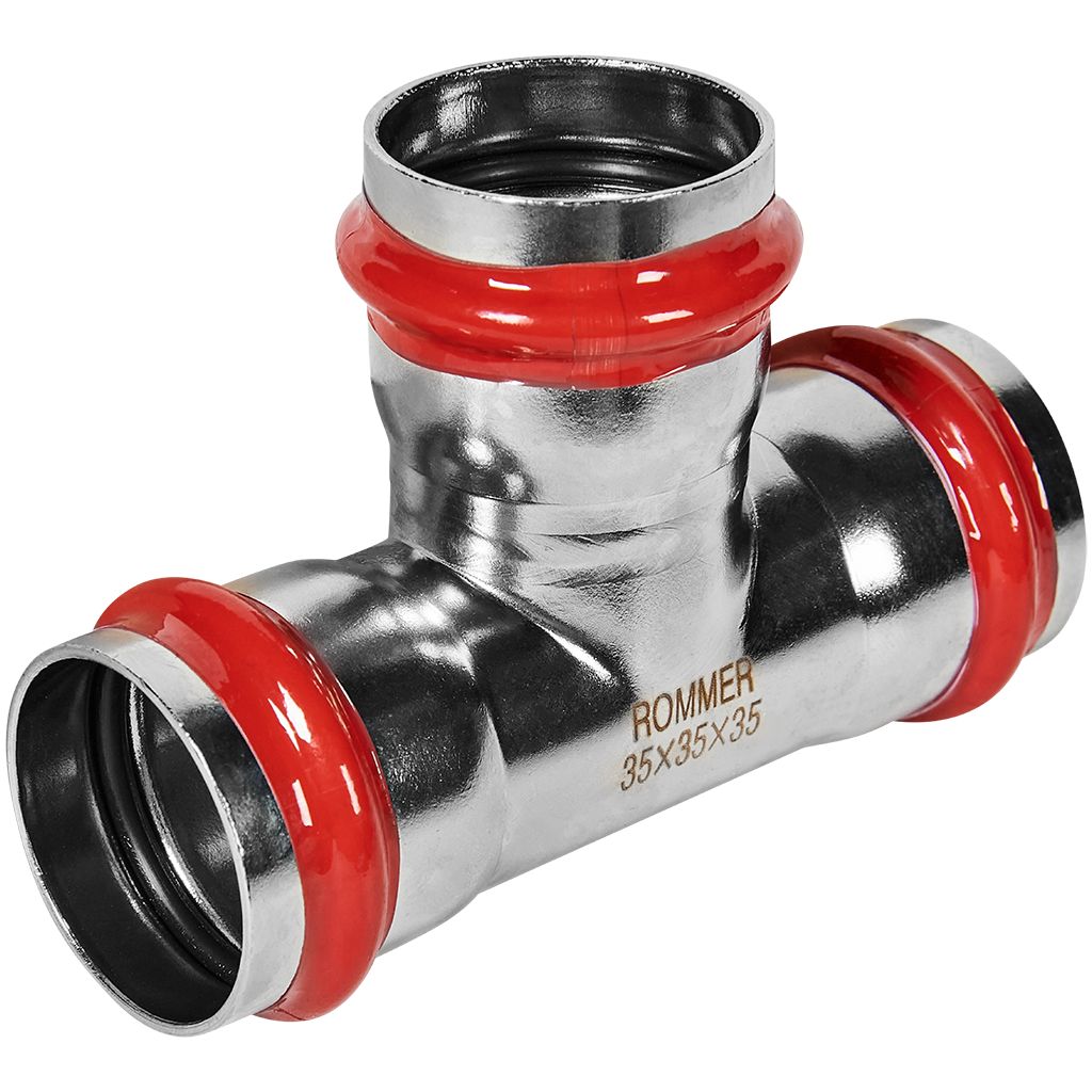 Тройник ROMMER равнопроходной 35 из нержавеющей стали прессовой