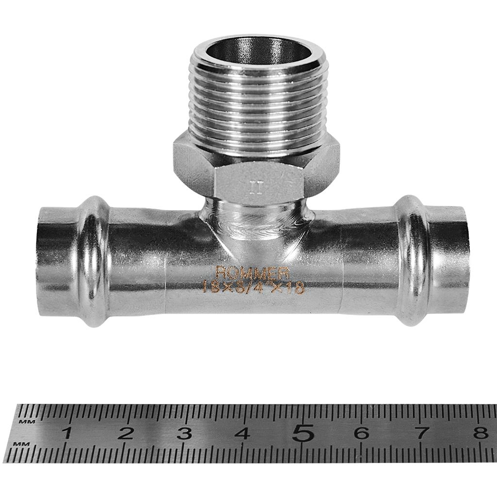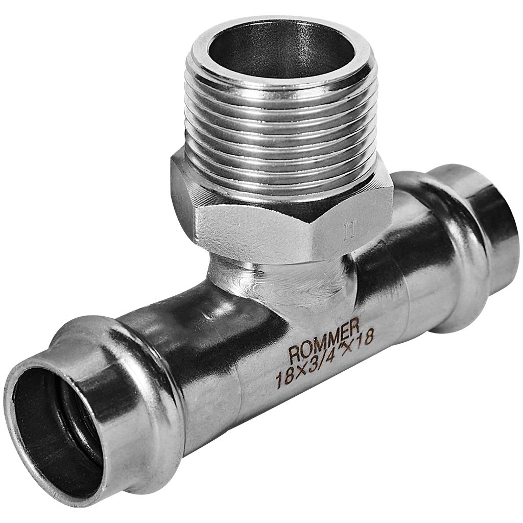 Тройник-переходник-НР ROMMER 18х3/4 из нержавеющей стали прессовой