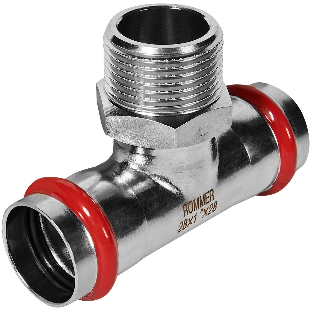 Тройник-переходник-НР ROMMER 28х1 из нержавеющей стали прессовой