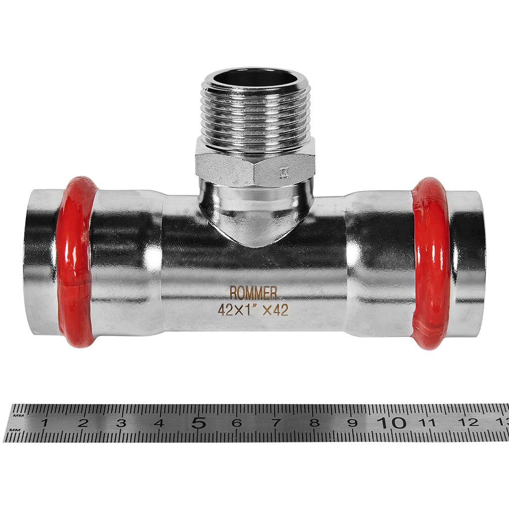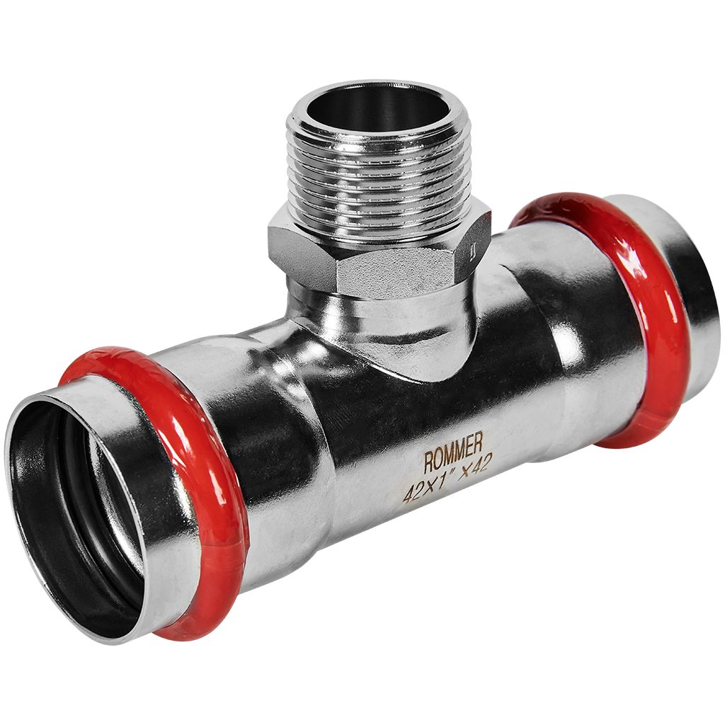 Тройник-переходник-НР ROMMER 42х1 из нержавеющей стали прессовой