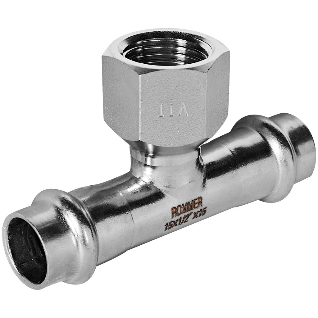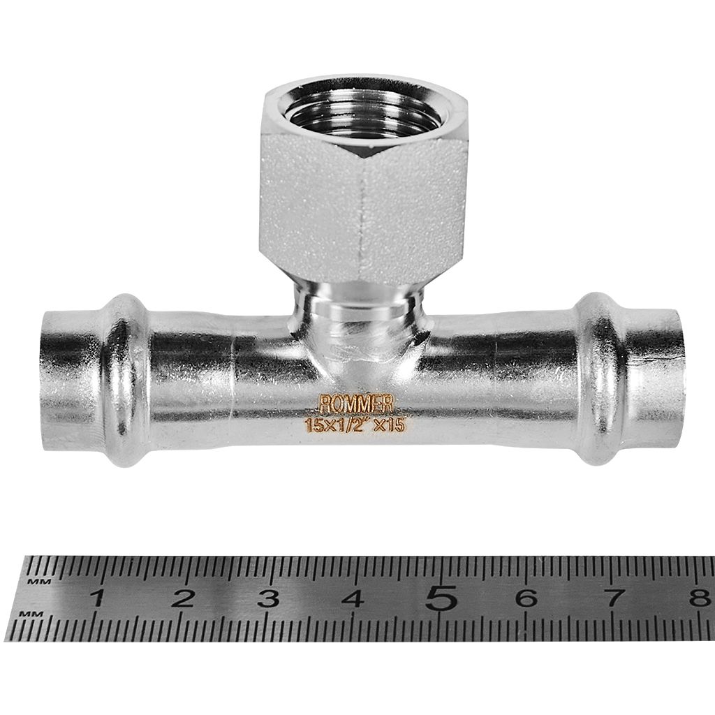 Тройник-переходник-ВР ROMMER 15х1/2 из нержавеющей стали прессовой