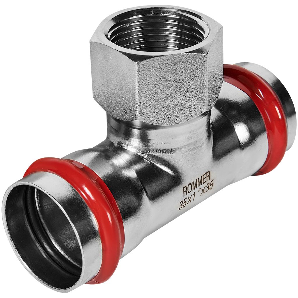 Тройник-переходник-ВР ROMMER 35х1 из нержавеющей стали прессовой