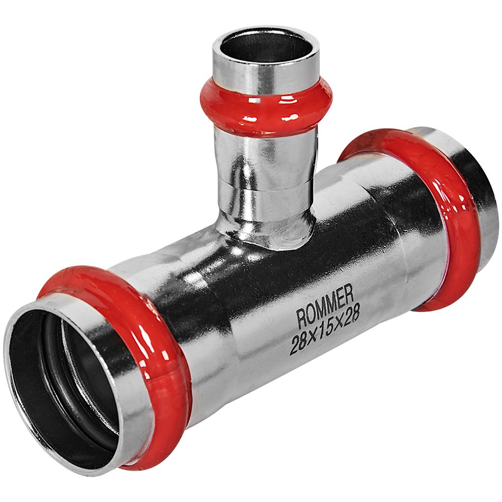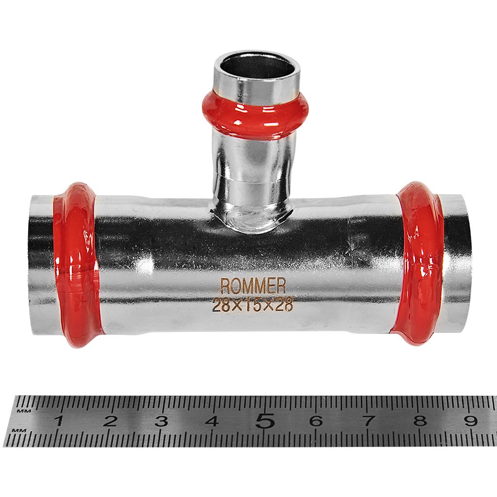 Тройник переходной ROMMER 28х15х28 из нержавеющей стали прессовой