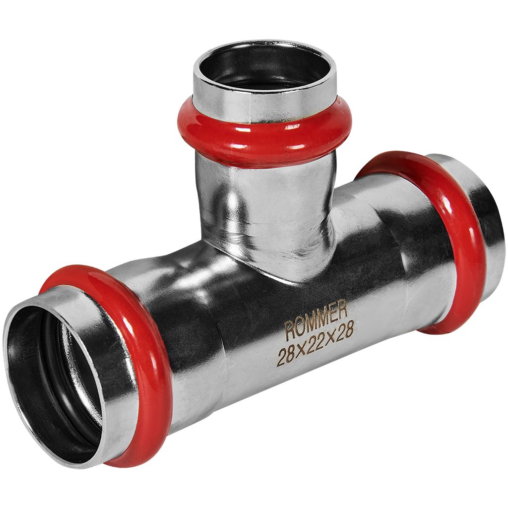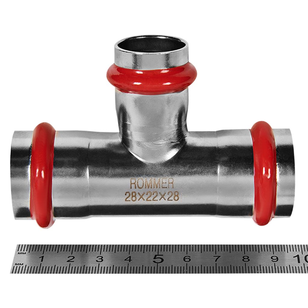 Тройник переходной ROMMER 28х22х28 из нержавеющей стали прессовой