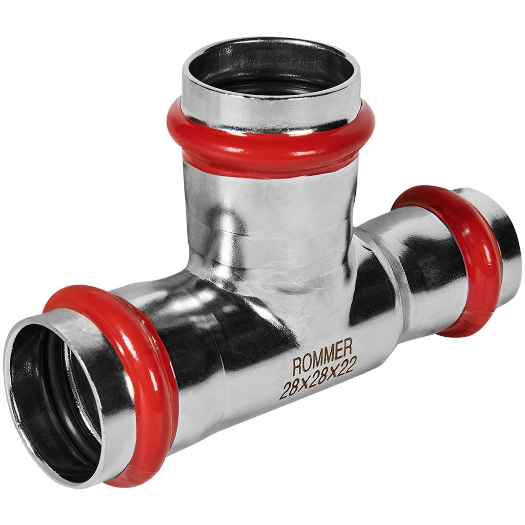 Тройник переходной ROMMER 28х28х22 из нержавеющей стали прессовой