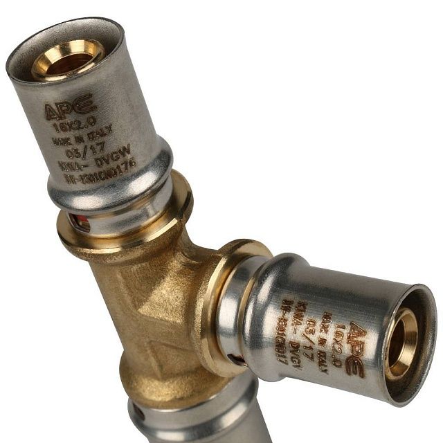 Тройник переходной STOUT 20х16х16 для металлопластиковых труб прессовой