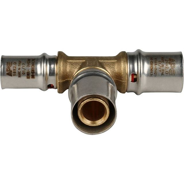 Тройник переходной STOUT 20х20х16 для металлопластиковых труб прессовой