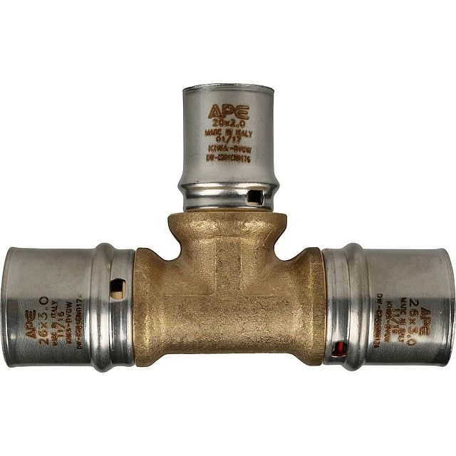 Тройник переходной STOUT 26х20х26 для металлопластиковых труб прессовой