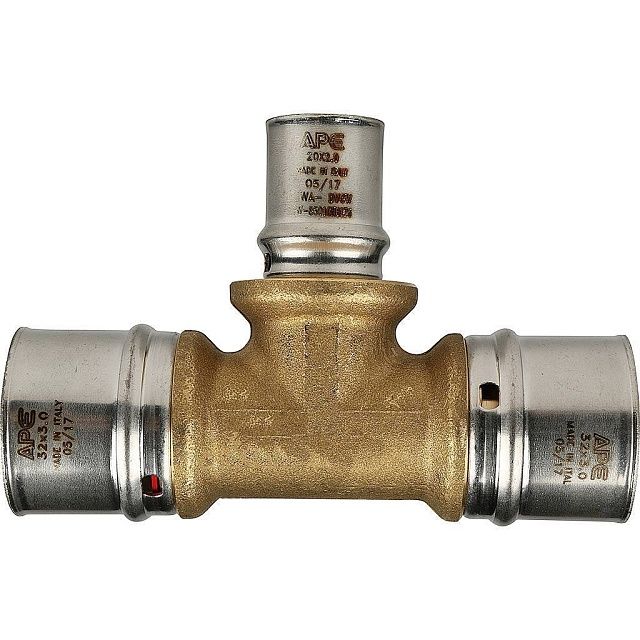 Тройник переходной STOUT 32х20х32 для металлопластиковых труб прессовой