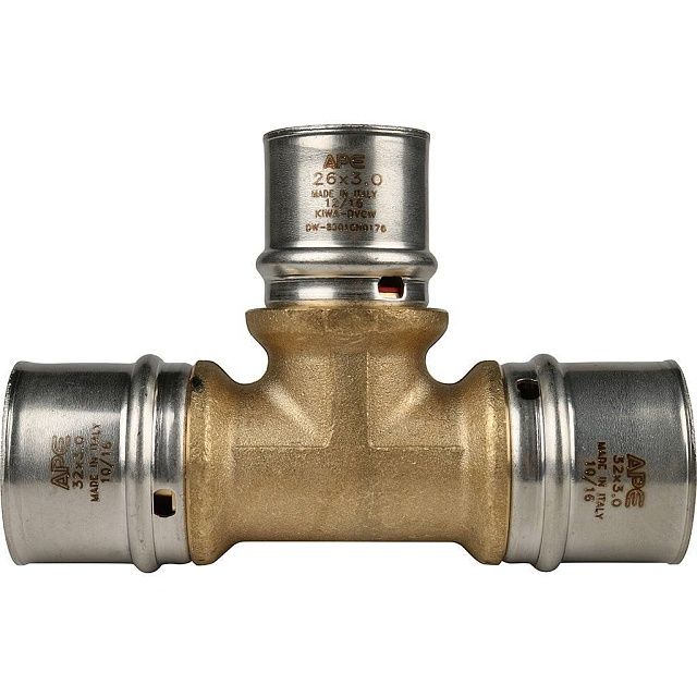 Тройник переходной STOUT 32х26х32 для металлопластиковых труб прессовой