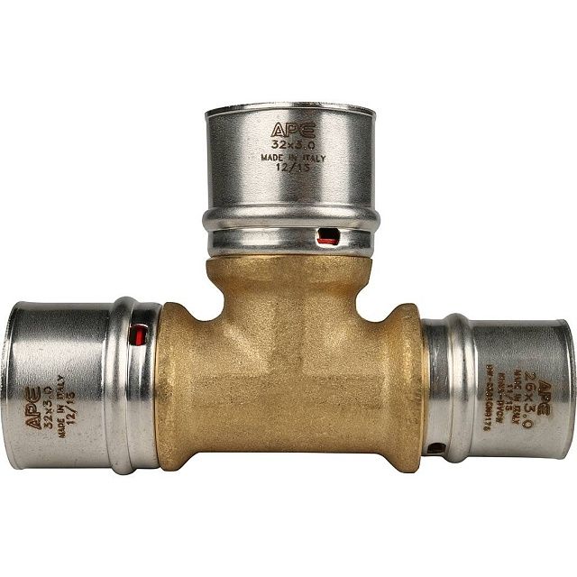 Тройник переходной STOUT 32x32x26 для металлопластиковых труб прессовой