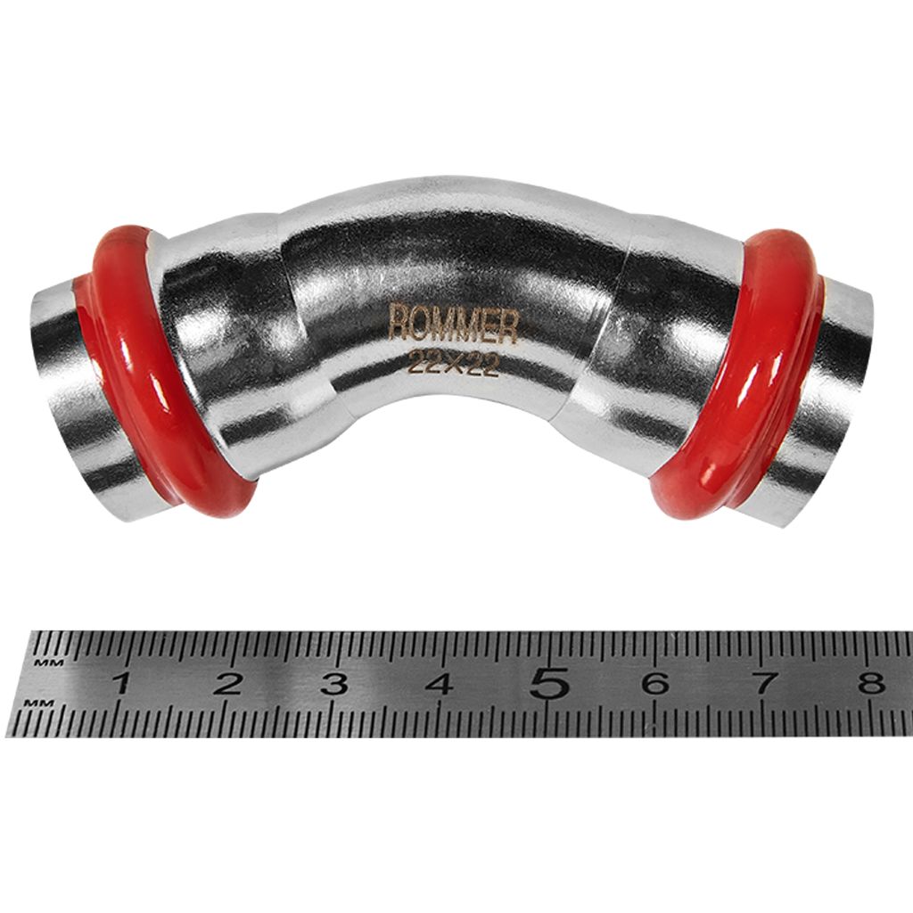 Угольник ROMMER 45° ВПр-ВПр 22 из нержавеющей стали прессовой