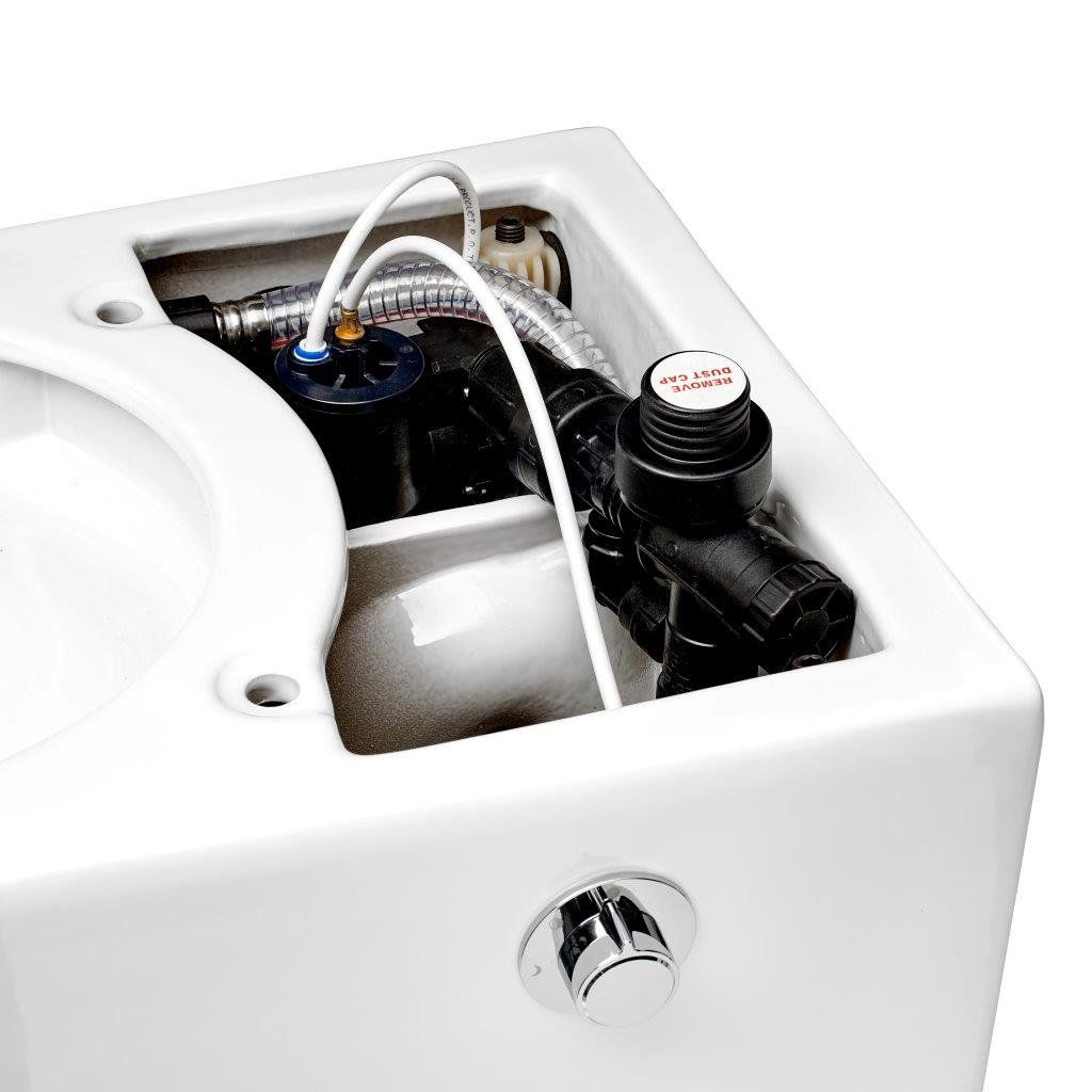Унитаз Swiss Aqua Technologies SATOFSHFS2 в своей конструкции не имеет смывного бачка.