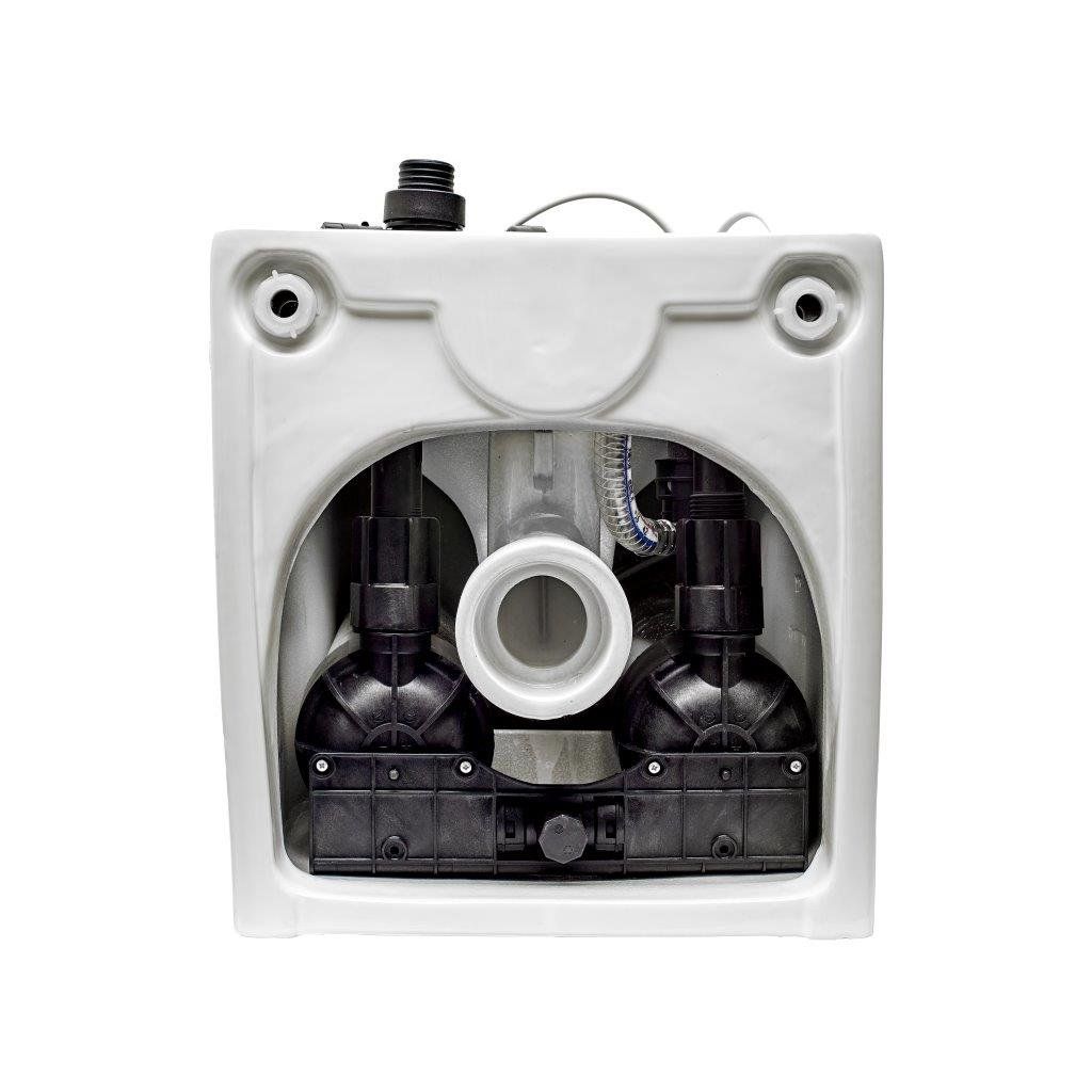 Резервуар с водой реализован в виде двух гидротрансформаторов, встроенных в корпус чаши унитаза.