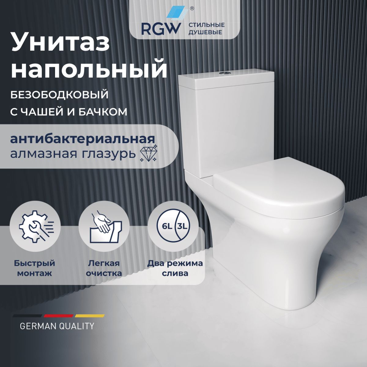 Унитаз RGW SW-04 — напольный унитаз, выполненный по немецкой технологии. Минималистичный дизайн и функциональная конструкция делают его незаменимым элементом туалета или ванной комнаты.