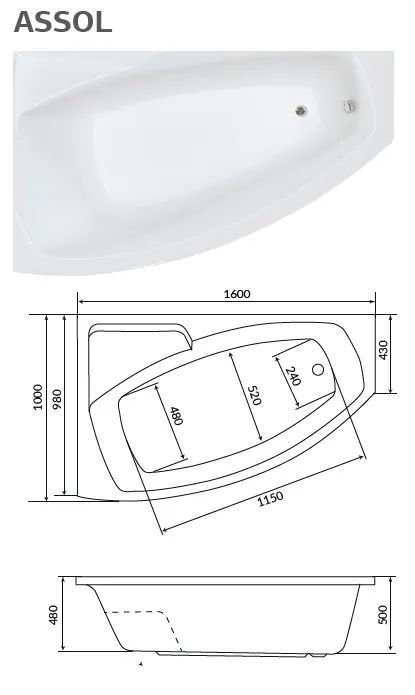 Ванна 1Marka ASSOL 160x100 L