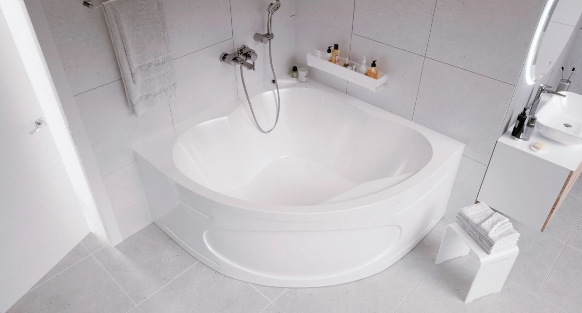 Акриловая ванна в классическом белом цвете, которая сразу же привлекает к себе внимание оригинальным дизайном и нестандартной формой. Ее компактный разамер также является дополнительным преимуществом среди других моделей угловых ванн.