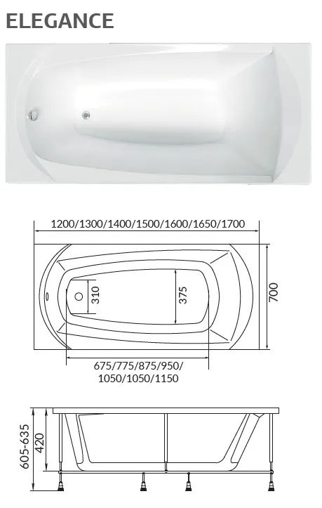 - удлиненная купель в области ног - комфортное расположение тела в ванне;