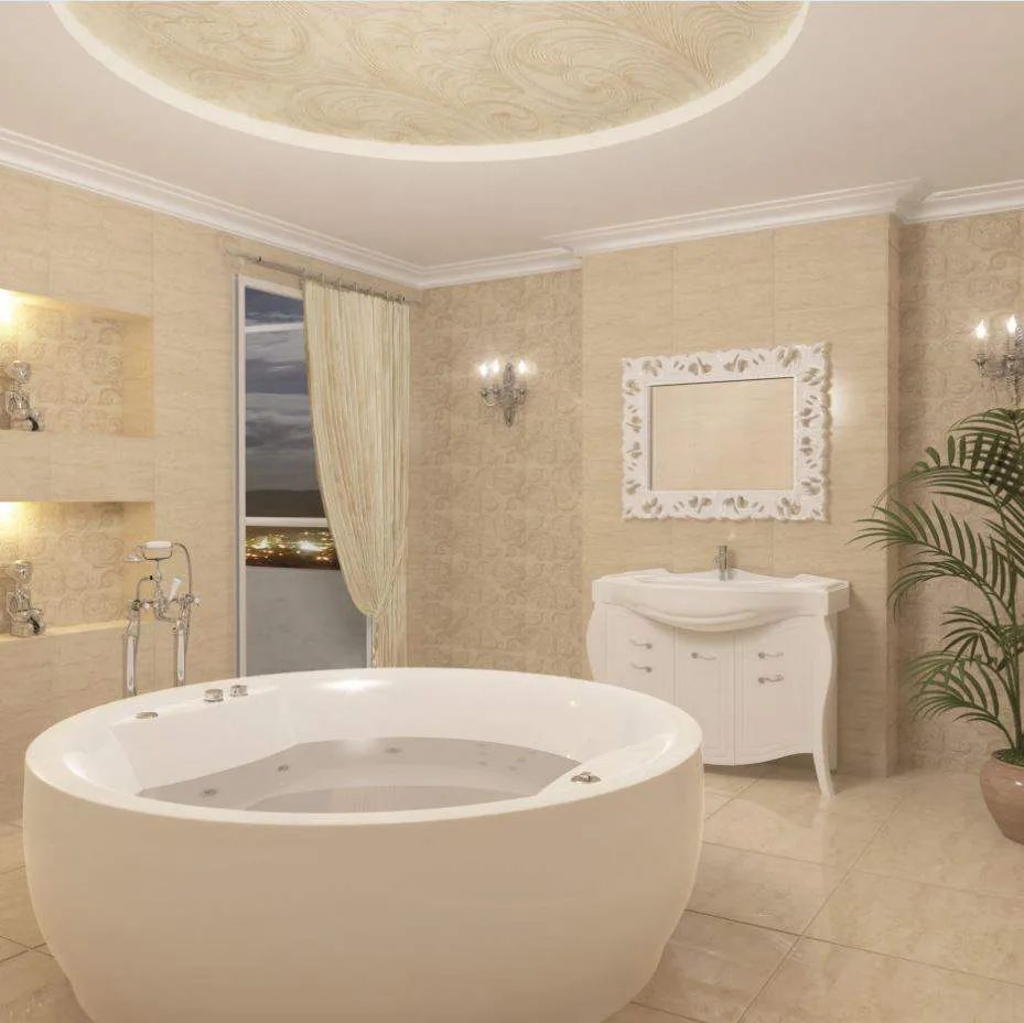 Круглая акриловая ванна заметно выделяется среди всех других моделей и является настоящим воплощением индивидуального стиля, высочайшего уровня комфорта и впечатляющей эстетики и статусности своего владельца. Выполненная в форме идеального круга, она создает в ванной комнате особенную атмосферу, располагающую к отдыху и расслаблению. Это не просто ванна, а настоящий домашний миниатюрный бассейн, который вмещает в себя около 600 бутылок шампанского. Для максимального декоративного эффекта рекомендуется устанавливать такую ванну в центральной части комнаты.