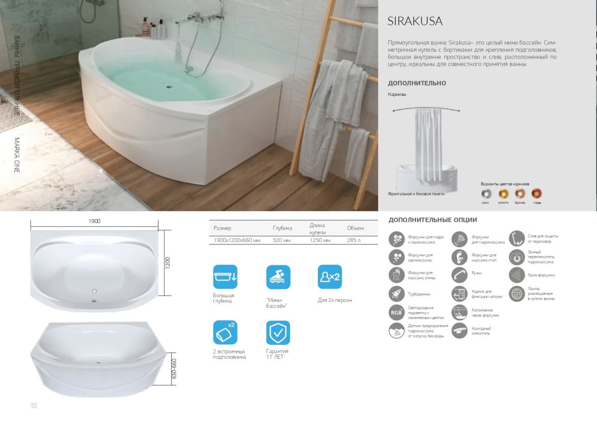 Также ванна может быть укомплектована подсветкой и гидромассажем, что выводит удобство и удовольствие от ее использования на совершенно новый уровень.