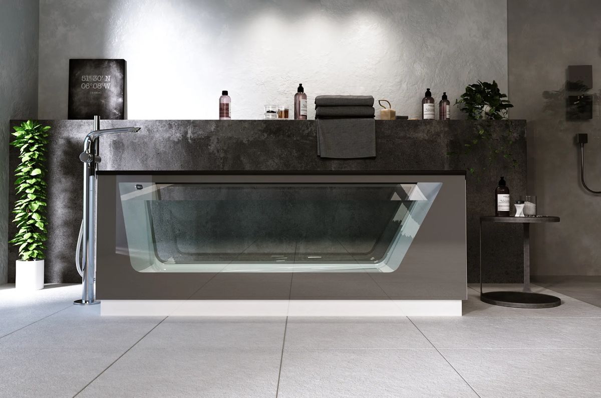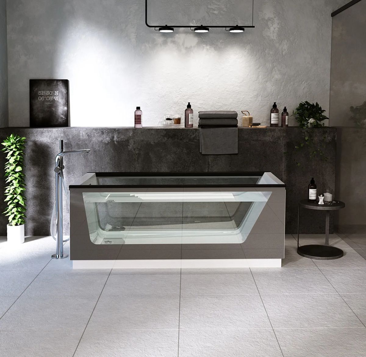 Лаконичная ванна, которая выглядит особенно стильно и привлекательно благодаря стеклянной стенке. Такое решение не только делает ее дизайн более запоминающимся и оригинальным, но и полностью избавляет внешний облик ванны от громоздкости. При этом стоит отметить и функциональность ванны - при всей внешней красоте и эстетике она превосходно подходит для активного ежедневного использования.