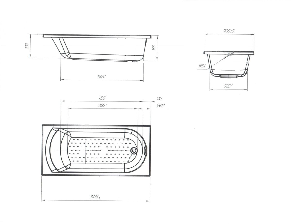 Ванна Poseidon Lily 150x70