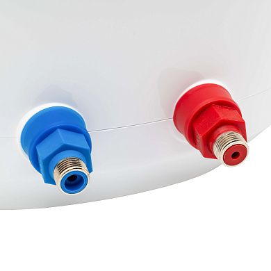 Компактные габариты и кубическая форма корпуса позволяют добавить этот водонагреватель в любой интерьер кухни и ванной.