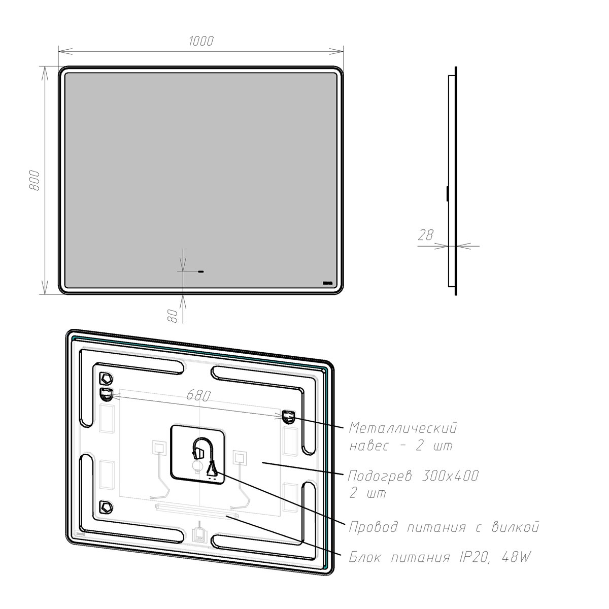 • LED-подсветка по контуру, холодный свет;