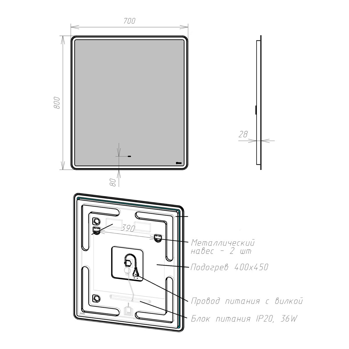 Зеркало Lemark ELEMENT 70х80 см с подсветкой, с подогревом